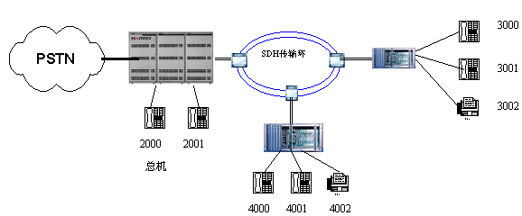 適用范圍:這種應(yīng)用適用于對電話系統(tǒng)安全性要求嚴格的場合,如電力系統(tǒng)行政交換機與調(diào)度交換機就可以以上述方式實現(xiàn)備份,從而實現(xiàn)行政或調(diào)度交換機某一臺不能工作時,依然可以通過備份系統(tǒng)打電話。