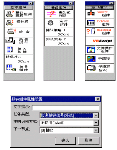 IVR:兩種方案的呼叫中心,目前的IVR系統(tǒng),均采用計算機語音卡方式進(jìn)行集成。這些語音板卡,既可以采用目前流行的板卡,也可以采用自行設(shè)計的板卡。利用廠商提供的API接口,開發(fā)者可以編寫各種語音流程業(yè)務(wù)。PBX交換機方案的IVR一般由PBX廠家作了主要的功能開發(fā),使用者只須應(yīng)用、配置;谡Z音板卡的呼叫中心一般板卡廠家提供API接口,開發(fā)者應(yīng)用開發(fā)的靈活性較大。