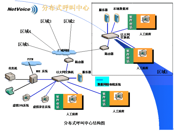 由于代理技能差異、語言差異、呼叫量的差異,以及客戶中心客戶所在地的變化及每個客戶對各自所擁有的用戶資料的保密性需求,分布式呼叫中心往往更適合各類企業(yè)的實際。分布式呼叫中心的建立,意味著需要在多個分中心之間進(jìn)行統(tǒng)一的呼叫控制及語音與同步數(shù)據(jù)轉(zhuǎn)移。NBX網(wǎng)絡(luò)交換機的引入,兩網(wǎng)合一的特性使分布式呼叫中心的建立成為了一件非常容易的事情。呼叫中心可以擴展到多個位于不同地域的局域網(wǎng)上,通過路由選擇可以自動地把呼叫(