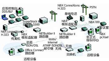 Stack交換機(jī)相連接。在需要計(jì)算機(jī)端口的地方,用戶簡(jiǎn)單地將PC連入NBX話機(jī)側(cè)面的端口。