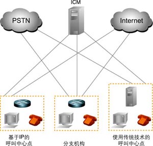 企業(yè)在信息化的發(fā)展過程中,面臨的市場競爭也越來越激烈,保持并發(fā)展客戶關(guān)系到企業(yè)的生存。因此,企業(yè)紛紛建立起呼叫中心和客戶關(guān)系管理系統(tǒng),以便更好地為客戶提供服務(wù),最大限度地提高客戶的忠誠度。但是,呼叫中 心主要依賴傳統(tǒng)的語音通信技術(shù),而客戶資料管理等廣泛應(yīng)用了先進的Web軟件技術(shù)和通信技術(shù),如何把這二者有機地結(jié)合起來,是企業(yè)信息系統(tǒng)亟待解決的問題。Cisco系統(tǒng)公司推出的IP聯(lián)絡(luò)中心(IP Contact Center,IPCC)技術(shù),建立了通往IP語音的橋梁。