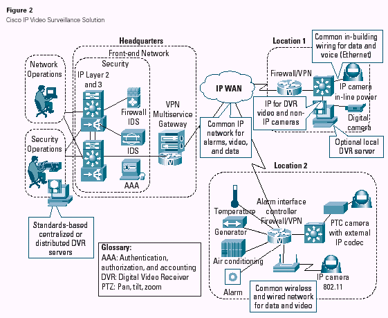 盡管圖中描述了眾多不同的網(wǎng)絡(luò)模塊,此架構(gòu)可相當(dāng)簡(jiǎn)單地加以總結(jié)。除安全運(yùn)營(yíng)中心外,所有視頻獲取和監(jiān)控設(shè)備都位于網(wǎng)絡(luò)邊緣。在總部和遠(yuǎn)程地點(diǎn)設(shè)計(jì)中,它們都與接入層交換機(jī)連接。安全運(yùn)營(yíng)中心可被認(rèn)作為一個(gè)新模塊,但也有人認(rèn)為它只是另一初始管理模塊。其差別只是管理采取了物理安全的形式。