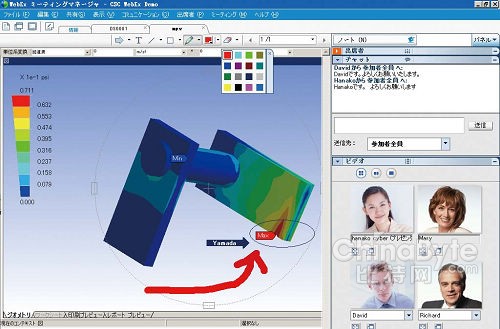 WebEx中國(guó)區(qū)市場(chǎng)經(jīng)理黃艷的演示中,整合了包括視頻對(duì)話、文件共享、協(xié)同畫(huà)圖、權(quán)限管理等功能的WebEx,效果儼然和傳統(tǒng)開(kāi)會(huì)沒(méi)有任何區(qū)別。5人的會(huì)議內(nèi)容中,大家可以相互面對(duì)面發(fā)言;對(duì)某個(gè)文件內(nèi)容有疑問(wèn),可以一同在上面涂涂改改;一邊講一邊能夠翻動(dòng)演示的PPT讓所有人看見(jiàn);甚至還能共享自己的桌面讓所有看見(jiàn),并且操作。