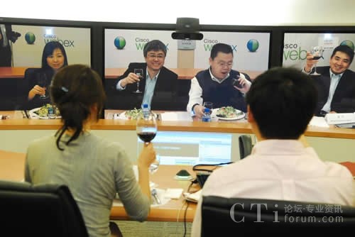 CTI論壇(ctiforum)5月6日消息(記者 楊佳林):中國,北京,2010年4月28日:無需像德國國防部長古滕貝格那樣駕車行駛3000多公里長途奔襲,跨越太平洋也一樣享受零距離的午餐。思科中國首席技術(shù)官梁永健、思科中國區(qū)副總裁華東區(qū)總經(jīng)理陳葵、思科WebEx研發(fā)及協(xié)作軟件全球副總裁袁征今天通過思科的網(wǎng)絡(luò)會議技術(shù)和中國知名博主在北京、上海和舊金山三地共進(jìn)午餐。