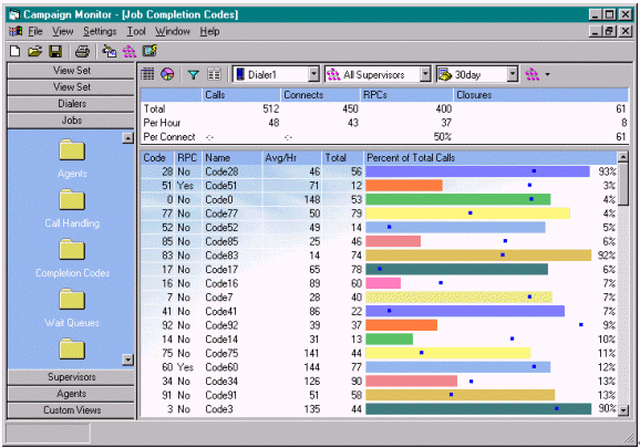 監(jiān)視器提供了系統(tǒng)、工作和業(yè)務(wù)代表狀況信息的實(shí)時(shí)查看。管理員可以根據(jù)需要監(jiān)控多個(gè)系統(tǒng)、工作或業(yè)務(wù)代表活動(dòng)(單或組),包括當(dāng)前呼叫結(jié)果、呼叫質(zhì)量、業(yè)務(wù)代表生產(chǎn)力、交談時(shí)間以及活動(dòng)目標(biāo)的達(dá)成進(jìn)度。范圍選擇器使您可以選擇查看多少數(shù)據(jù)。管理員能夠監(jiān)視呼入與呼出的等待隊(duì)列,并查看各個(gè)活動(dòng)的呼叫完成結(jié)果,進(jìn)而分析活動(dòng)的效益。