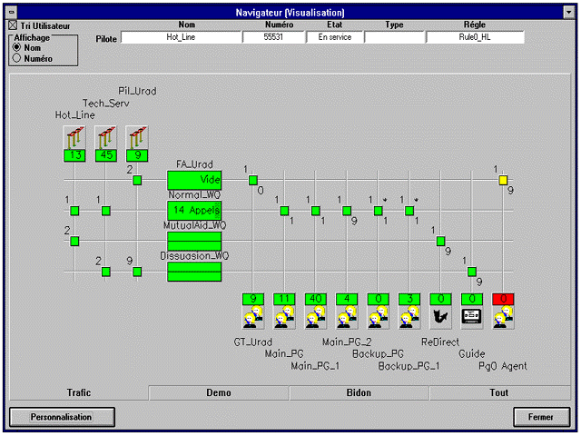 A4400 CCS 呼叫中心監(jiān)管系統(tǒng)是A4400 CCD 的完美配套設(shè)備。此監(jiān)管系統(tǒng)組件提供最新實(shí)時(shí)監(jiān)控功能。經(jīng)理和主管不僅能很好協(xié)調(diào)呼叫處理過程,而且也能觀察服務(wù)水準(zhǔn)、話務(wù)量情況等,并能在現(xiàn)場采取相應(yīng)的措施。