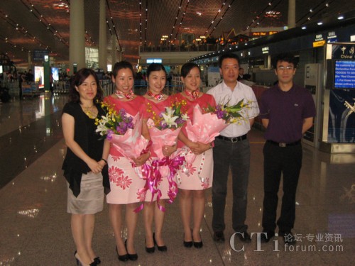 信息導(dǎo)航業(yè)務(wù)中心總經(jīng)理?xiàng)钣、副總?jīng)理魏婕等領(lǐng)導(dǎo)前往機(jī)場(chǎng)送行,中心副總經(jīng)理郝孟堯帶隊(duì)前往韓國。中心領(lǐng)導(dǎo)向三位114話務(wù)員送上了獻(xiàn)花與祝福,希望她們珍惜此次走出國門為世博會(huì)服務(wù)的難得機(jī)會(huì),展現(xiàn)114的風(fēng)采,將北京聯(lián)通114最動(dòng)聽的聲音、最美麗的微笑、最優(yōu)質(zhì)的服務(wù)向世界呈現(xiàn)。三位114話務(wù)員表示,將用純正、專業(yè)的中文綜合信息咨詢服務(wù),讓世界感受到聯(lián)通114的熱情與微笑。
