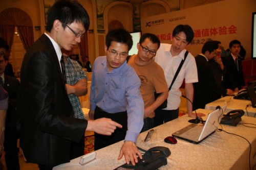 CTI論壇(ctiforum)4月25日消息(記者 潘婷婷): 廣東佳和通信技術(shù)有限公司主辦的首場企業(yè)智能通信體驗會,于2011年4月13日在廣州富力麗思卡爾頓酒店隆重召開,并取得圓滿成功。此次體驗會來自佳和通信的負責人和業(yè)內(nèi)專家就佳和企業(yè)智能通信平臺的應用以及協(xié)同辦公的發(fā)展趨勢發(fā)表了主題演講,為所有到場的100多位來賓做了詳實的介紹。同時展示了佳和“睿”系列的7個應用解決方案,并對拳頭產(chǎn)品——智能IP話機T600、移動分機M600、個人助理軟件IPA PRO等進行了現(xiàn)場演示和互動,其目的在于使現(xiàn)場嘉賓充分感受企業(yè)智能通信的價值和魅力,同時親身體驗到如何在在加速辦公自動化的同時提高企業(yè)效率、節(jié)約成本。