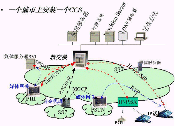 為了完整解決城域網(wǎng)上承載話音業(yè)務(wù),實(shí)現(xiàn)IP phone PSTN、IP phone IP phone、PSTN IP phone的呼叫。新太公司的集成方案中包括以下設(shè)備:軟交換核心設(shè)備、媒體網(wǎng)關(guān)、信令網(wǎng)關(guān)、IP PBXIP 話機(jī)、PC IP Softphone、媒體服務(wù)器。