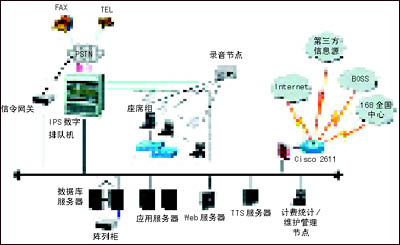 本項(xiàng)目采用新太科技交互式電話會議系統(tǒng)2.0版,系統(tǒng)各組成部分見圖1。前端接入設(shè)備采用SUNTEK-IPS數(shù)字排隊(duì)機(jī),負(fù)責(zé)多方電話會議用戶和其他業(yè)務(wù)用戶接入的交換排隊(duì)、自動語音資源提供、座席服務(wù)資源提供、錄音、計(jì)費(fèi)等等。SUNTEK-IPS數(shù)字排隊(duì)機(jī)是新太科技最新一代軟交換平臺,是整個(gè)系統(tǒng)平臺的核心。它綜合了新太科技?xì)v代平臺的優(yōu)勢,采用世界上最先進(jìn)的軟交換(包交換)技術(shù)和CompactPCI技術(shù),支持主控CPU卡冗余和熱拔插,擁有更大規(guī)模的交換系統(tǒng)總線(CompactPCI的CTBus總線共有4096個(gè)時(shí)隙,理論上,單個(gè)機(jī)框可以支持4k×4k的交換)。SUNTEK-IPS數(shù)字排隊(duì)機(jī)基于自主開發(fā),擁有自主產(chǎn)權(quán),保證了極高的性價(jià)比,已經(jīng)通過了信息產(chǎn)業(yè)部入網(wǎng)認(rèn)證。SUNTEK-IPS數(shù)字排隊(duì)機(jī)現(xiàn)已在十多個(gè)省成功開展全省業(yè)務(wù)的事實(shí),證明了它具備技術(shù)先進(jìn)、可靠性強(qiáng)等特點(diǎn)。