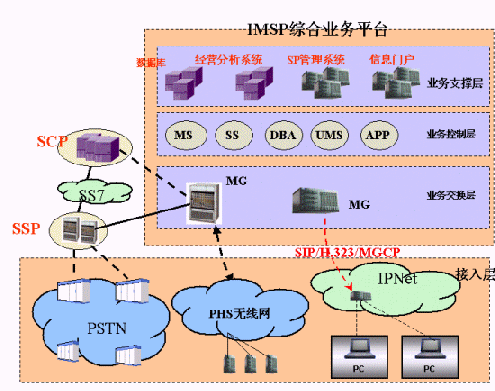 4、 支持標(biāo)準(zhǔn)的SIP/H.323協(xié)議,IMSP支持IP接入,系統(tǒng)可平滑過渡到下一代網(wǎng)絡(luò)(NGN),逐步建立符合標(biāo)準(zhǔn)的服務(wù)、網(wǎng)絡(luò)和終端,徹底取代原有相對(duì)獨(dú)立的應(yīng)用服務(wù)、通信網(wǎng)絡(luò)和終端。;