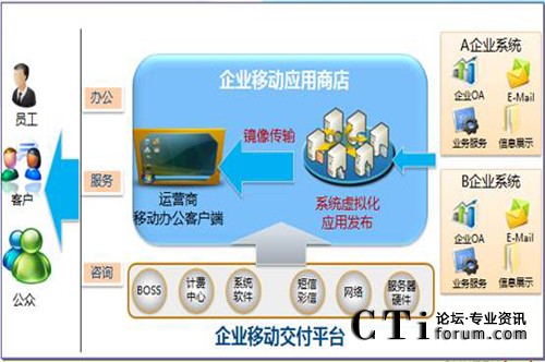 如果在政府或企業(yè)在內(nèi)網(wǎng)部署“移動應用交付平臺”,即可充分利用現(xiàn)有運營商網(wǎng)絡渠道服務的能力,從而實現(xiàn)政府或企業(yè)的“移動辦公”要求。