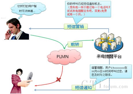 來電提醒業(yè)務(wù)是指被叫用戶在忙、無人接聽、不在服務(wù)區(qū)、關(guān)機等狀態(tài)下,使用來電提醒功能,享受到語音信箱、機主留言及機主特定留言等個性化和人性化的提醒服務(wù),其有著傳統(tǒng)通信無可比擬的優(yōu)點。