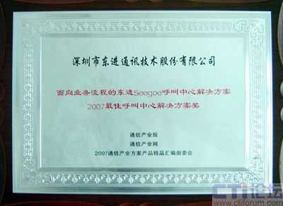 東進(jìn)Seegoe呼叫中心解決方案獲2007最佳呼叫中心解決方案獎(jiǎng)