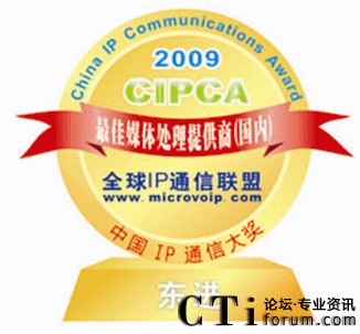 代表國內(nèi)IP通信領(lǐng)域最高水準(zhǔn)的中國IP通信大獎(jiǎng)(CIPCA),于2009年9月25日在上海NexCom Expo 下一代網(wǎng)絡(luò)通信展暨CIPCC中國IP通信大會上揭曉。深圳市東進(jìn)技術(shù)繼2008年獲得此項(xiàng)殊榮后,憑借無可爭議的票數(shù)優(yōu)勢,蟬聯(lián)“2009中國IP通信大獎(jiǎng)”,取得“最佳媒體處理提供商(國內(nèi))”獎(jiǎng)項(xiàng)。