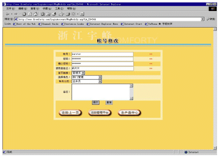 帳號(hào)系統(tǒng)主要是為適應(yīng)一個(gè)分銷商內(nèi)部會(huì)有多個(gè)不同等級(jí)的人使用這個(gè)系統(tǒng)。對(duì)于分銷商而言,它可以建立多個(gè)帳號(hào),并為每個(gè)帳號(hào)分配不同的權(quán)限,以及每個(gè)帳號(hào)可以對(duì)應(yīng)管理不同下屬企業(yè)(參看圖5和圖6)。還可以為不同的帳號(hào)提供不同的進(jìn)入頁(yè)面,使得用戶使用更加方便。