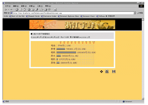 宇峰公司(www.fromforty.com)是柯達(dá)(中國(guó))有限公司在中國(guó)華東地區(qū)的總代理,負(fù)責(zé)管理華東地區(qū)近600個(gè)分銷商和連鎖店。公司非常重視信息化建設(shè),添設(shè)了大量的計(jì)算機(jī),建立起初步的管理系統(tǒng)。但是直到2000年還是依靠E-mail傳遞大量的Excel表格獲取需要的產(chǎn)品銷售和庫(kù)存的信息。這些表格對(duì)各級(jí)分銷商查詢和統(tǒng)計(jì)數(shù)據(jù)來(lái)說(shuō)非常麻煩,因?yàn)槊恐芤幚韼装賯(gè)訂購(gòu)單。整個(gè)處理過(guò)程非常緩慢,并且成本很高,也容易造成各種的數(shù)據(jù)錯(cuò)誤。而公司內(nèi)部對(duì)業(yè)務(wù)人員銷售情況的統(tǒng)計(jì),也頗為麻煩,因?yàn)橄录?jí)分銷商上報(bào)上來(lái)的數(shù)據(jù)準(zhǔn)確性差,并且不夠及時(shí)。處理這些表格對(duì)宇峰公司和分銷商以及連鎖店而言都是效率很低的,并且常常令人茫然不知所措。