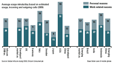 圖2 各個國家或地區(qū)的手機(jī)使用時長(因工作與個人因素)