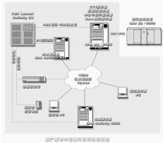 由銀證公司與IBM公司聯(lián)合開發(fā)的大規(guī)模銀行客戶服務(wù)中心系統(tǒng)。該系統(tǒng)基于朗訊DEFINITY程控交換機(jī)和IBM客戶服務(wù)系統(tǒng)開發(fā)平臺(tái),開通200外線,120線電話銀行自動(dòng)應(yīng)答,50線人工座席服務(wù)和12路傳真服務(wù)。