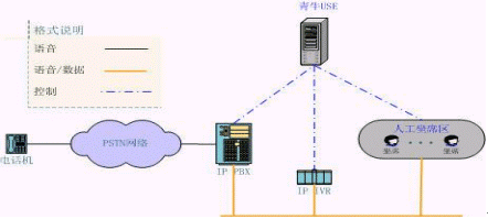 青牛IVR集群方案將原來放在PBX后面的IVR"前移",PBX的LINK只有和坐席相關(guān)的信息,大量的和IVR相關(guān)的呼叫信息被剝離出去,由青牛網(wǎng)絡(luò)IVR直接自行處理。根據(jù)統(tǒng)計(jì),自動(dòng)業(yè)務(wù)的呼叫量在整個(gè)客服中心呼叫量中占大多數(shù),當(dāng)呼叫量越大的時(shí)候,該方案的優(yōu)勢就越明顯。