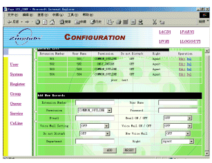 ZINGSERV具有基于WEB的配置界面,系統(tǒng)管理員注冊后,可方便完成座席分配,技能組分配等功能: