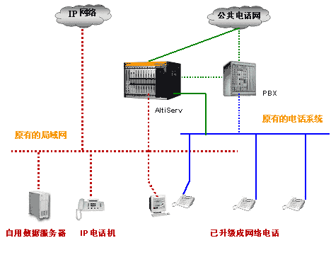 如果您的企業(yè)規(guī)模不是很大,原有的交換機投資不大,我們建議您用奧迪堅的Altiserv來替代原有的交換機。當然也可保留原有交換機,將Altiserv作后端設備。