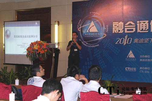 CTI論壇(ctiforum)9月10日消息(記者 楊毅):2010年9月9日奧迪堅在廣州市嘉鴻華美達廣場酒店舉辦的“下一代融合通信平臺華南研討會” 圓滿落下帷幕。本次會議以 “融合通信” 為主題,將最新的由“IPT、IPCC、UC和Mobility”四個部分組成的融合通信技術完美呈現(xiàn)在嘉賓眼前,吸引了業(yè)界眾多知名廠商和媒體,并得到了奧迪堅在各個行業(yè)的新老客戶的積極響應和參與。通過奧迪堅的精彩主題演講、現(xiàn)場的情景秀表演和眾多案例分享等多種形式,與合作伙伴及嘉賓共同探討融合通信技術該如何發(fā)展、解讀渠道新政策、同時更加深入了解奧迪堅產品,提高合作伙伴在市場上的競爭力。CTI論壇(m.zhaolingmuyuan.com)獨家承辦此次會議,并進行全程報道。