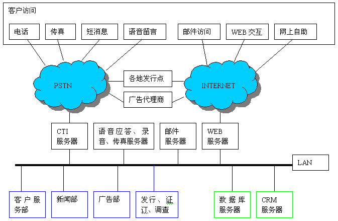 協(xié)同CRM與多媒體呼叫中心結(jié)合,公開各種通訊渠道, 7*24收集新聞線索、廣告線索。實現(xiàn)電話、WEB交互、郵件訪問的統(tǒng)一路由分配,智能選擇最合適的接待人選。同時對客戶數(shù)據(jù),進(jìn)行統(tǒng)一管理、維護(hù),這樣在接待客戶時會有的放矢,能夠及時處理客戶的投訴、預(yù)定、建議等服務(wù)需求,并向客戶提供更加主動的、一對一的親情化服務(wù),進(jìn)而提高報社的整體服務(wù)質(zhì)量,讓客戶滿意,使得用戶數(shù)和營業(yè)收入不斷增加,并形成良性循環(huán)。