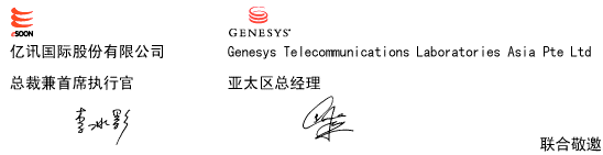 屆時,不僅有Genesys全球總裁率領(lǐng)資深專家向您介紹客戶關(guān)系管理領(lǐng)域的市場動向與未來趨勢,還帶來了全球拭目以待、發(fā)熱發(fā)光的Genesys最新產(chǎn)品 ── G7。此外主辦單位更有幸請來兩岸三地知名客戶,提供商務應用實例,共同分享其成功經(jīng)驗,為您的企業(yè)及同行業(yè)提供了相互交流的機會。