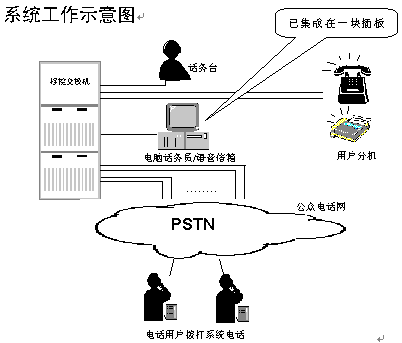 該系統(tǒng)可作為程控交換機(jī)銷售商的配套模塊配給新用戶,也可用于電力、院校、企業(yè)集團(tuán)、政府機(jī)關(guān)等已擁有交換機(jī)的單位加配電腦話務(wù)員和語音信箱及114查號臺功能。