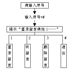 3). 若輸入的分機(jī)信箱號碼正確,此時系統(tǒng)會提示用戶"留言請按1,主人訪問請按2",按1后即可給該信箱留言。