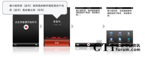 聲龍(Dragon)系列應(yīng)用軟件是基于Nuance著名的Dragon NaturallySpeaking® 語音軟件開發(fā)的應(yīng)用,借助語音識(shí)別技術(shù),用戶在輕松自然說話時(shí),就可將語音即時(shí)轉(zhuǎn)換成要發(fā)送的短信文本或電子郵件,更新社交網(wǎng)絡(luò)狀態(tài)和進(jìn)行網(wǎng)絡(luò)搜索。事實(shí)證明,語音識(shí)別的速度比使用鍵盤輸入文字快上五倍以上。