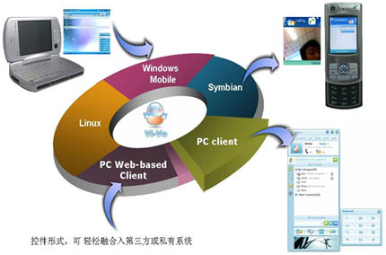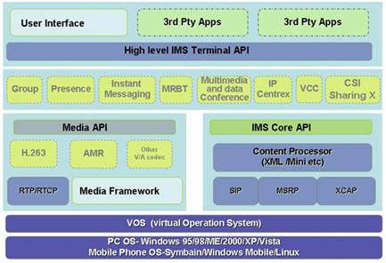 IMS軟終端產(chǎn)品線主要包括:PC軟終端(Windows版本)、手機軟終端(Symbian S60手機、Windows Mobile手機以及Linux手機)和Web控件通信終端。