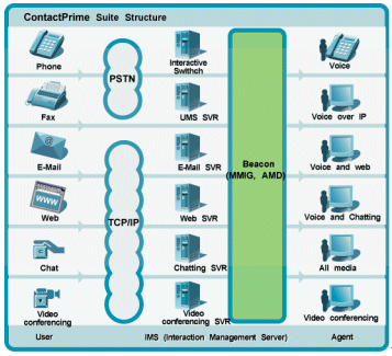 ContactPrime Beacon是ContactPrime系列產(chǎn)品中的一個(gè)組件,它是核心組成元件,可為CSR處理和提交各種多媒體,包括電話、傳真、電子郵件、VoIP、FoIP、語音郵件、Web交互、聊天、視頻會(huì)議及Web協(xié)作等。