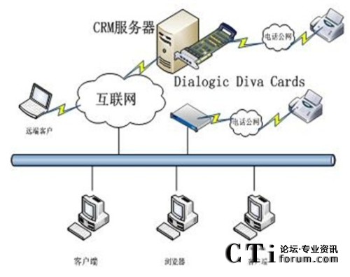 圖:與Dialogic Diva 卡結合的CRM系統(tǒng)結構圖