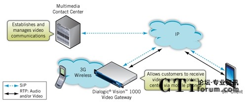 多媒體聯(lián)絡(luò)中心應(yīng)用控制視頻通訊,執(zhí)行如接受呼叫、管理呼叫等功能。Vision 1000視頻網(wǎng)關(guān)使客戶(hù)能夠從他們的3G無(wú)線電話(huà)上訪問(wèn)多媒體聯(lián)絡(luò)中心應(yīng)用的視頻功能。