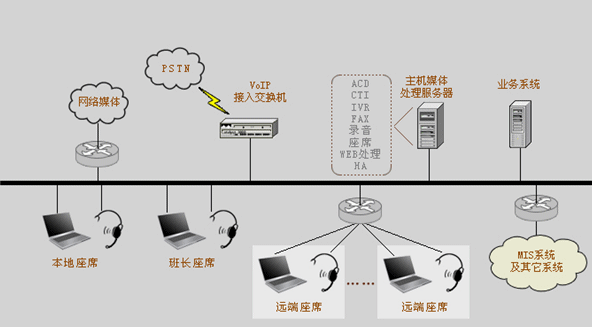 我們可以非常明確的一點是:采用分布式座席的技術(shù),使得遠端座席與中心座席除了地域上的差異,其它部分完全相同。可以說只要網(wǎng)絡(luò)無極限,座席分布就是無極限的。