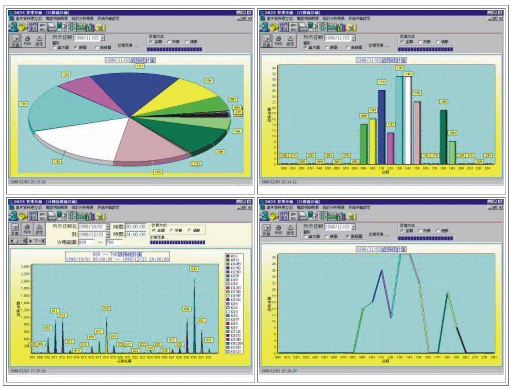 - 提供日期、月份、年度之分析統(tǒng)計(jì)圖表,且該分析統(tǒng)計(jì)圖 表還可針對(duì)金額、秒數(shù)、通數(shù)之條件列示各種統(tǒng)計(jì)分析圖表。