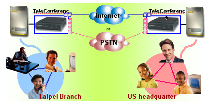 TeleConference可以與交換機(jī)充分整合,不同區(qū)域的會議參加者,可以分別在local串接起來后,再透過一條外線連接另一地的電話會議,只需占用一條外線資源,避免造成外線占線的情況。TeleConference可以與網(wǎng)絡(luò)電話界面做整合,將國際長途電話透過Internet來傳送,省下可觀的長途電話費(fèi)用。