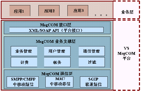 o 業(yè)務層:運行在VS MsgCOM的各類業(yè)務應用。