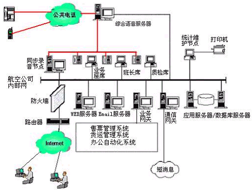。。本系統(tǒng)提供基于計算機語音板卡和排隊交換機兩種語音接入方式,都支持1號和7號信令線路的接入。對于大中型的航空公司客戶服務(wù)中心系統(tǒng),可選用排隊交換機作為語音接入設(shè)備,保障系統(tǒng)的可靠性和穩(wěn)定性;對于20個以下座席的中小型航空公司客戶服務(wù)中心系統(tǒng),則建議使用基于計算機語音板卡的形式,可以減少企業(yè)投資,同時具有良好的系統(tǒng)性能。
