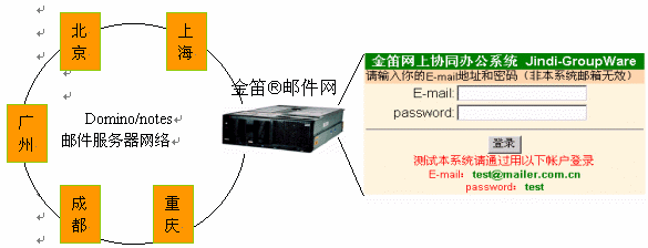 。1) 在不改變現(xiàn)有網(wǎng)絡(luò)硬件、軟件環(huán)境的情況下,添加一臺郵件網(wǎng)關(guān)服務(wù)器,通過統(tǒng)一的web登陸界面,輸入Email地址和密碼后,金笛?郵件網(wǎng)關(guān)會自動根據(jù)內(nèi)部DNS找到該用戶所在的Domino Mail Server, 并通過標(biāo)準(zhǔn)郵件協(xié)議POP3提取該用戶的郵件,以web頁面形式顯示在用戶屏幕上。