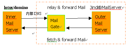 這種方案在有一定規(guī)模的企業(yè)比較典型,內部網為Lotus/domino或Exchange的群件系統(tǒng),為內部用戶提供smtp, pop3