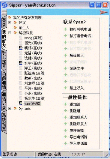 該軟件可以實現(xiàn)網(wǎng)上可視交談、電話會議、短信傳輸、文件傳輸?shù)榷喾N功能。