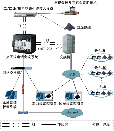 交互式電話會議CNFC(Conference Calling) 業(yè)務是指利用PABX、PSTN、PLMN等通信網絡舉行的多方同時通話模式,電話網相當于虛擬的大會場,會議發(fā)起者可以在任意時間、任意地點通過固定電話、專用會議終端、移動電話發(fā)起會議,與會者可以是手機、固定電話或專用會議終端參加會議電話,它是一種節(jié)資、省時、高效、方便地召開會議的新方式。