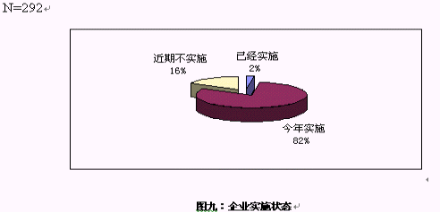 對大多數(shù)企業(yè)來說,對CRM還處于關(guān)注階段,只有7家企業(yè)表示已經(jīng)開始實施,在電話訪問中,了解到這7家企業(yè)的實施的主要是在渠道管理和客戶呼叫中心等方面,但表示今年會開始實施的卻超過8成。