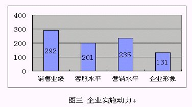 是什么原因驅(qū)使這么高比例的企業(yè)實施CRM呢?調(diào)查結(jié)果顯示主要的動力集中在提高銷售業(yè)績、提升客戶服務(wù)管理水平、提高營銷管理水平和提升企業(yè)形象方面等4個方面:提升銷售業(yè)績:所有的被訪企業(yè)都選擇了這個項目,可見追求業(yè)績增長對營銷管理人員產(chǎn)生的直接壓力,是實施CRM的主要動因。在電話訪問中企業(yè)的市場部門希望能利用CRM對銷售部門進(jìn)行信息化管理,其中銀行、證券類服務(wù)業(yè)還希望利用CRM逐步為客戶提供個性化的服務(wù),從而獲得競爭力。