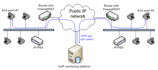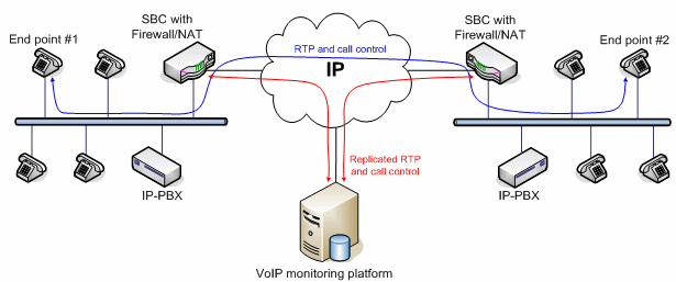 VoIP應(yīng)用的質(zhì)量監(jiān)控分為主動(dòng)式和被動(dòng)式兩種實(shí)現(xiàn)方式。主動(dòng)式的系統(tǒng)能產(chǎn)生呼叫,而被動(dòng)式的系統(tǒng)只是監(jiān)測(cè)進(jìn)行中的呼叫。兩種方法各有優(yōu)勢(shì)。VoIP監(jiān)控方案的架構(gòu)取決于網(wǎng)絡(luò)Edge設(shè)備的類型和結(jié)構(gòu)。有些大型企業(yè)采用的VoIP網(wǎng)絡(luò)配備了一種特殊設(shè)備,叫SBC(Session boarder controller),除了完成類似路由器的功能外,還能完成流量分配、數(shù)據(jù)/語(yǔ)音信號(hào)加密以及業(yè)務(wù)質(zhì)量控制等功能。此外,通過(guò)過(guò)濾和替換數(shù)據(jù)包內(nèi)的、與用戶有關(guān)的特定信息,SBC還能隱藏公司的網(wǎng)絡(luò)拓?fù)浣Y(jié)構(gòu)和用戶信息,不被外部的IP世界所知道。