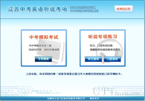在“中考、高考英語(yǔ)聽說(shuō)考場(chǎng)平臺(tái)”之外,科大訊飛還同步推出“互動(dòng)英語(yǔ)”系列學(xué)習(xí)產(chǎn)品,并提供用戶免費(fèi)試用。