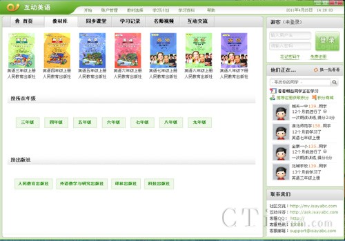 “互動(dòng)英語(yǔ)”學(xué)習(xí)平臺(tái),主要針對(duì)3-9年級(jí)中小學(xué)生,實(shí)現(xiàn)在家庭環(huán)境下,提供與學(xué)校課程同步的、多種形式的口語(yǔ)和聽力訓(xùn)練,實(shí)時(shí)評(píng)測(cè)學(xué)生的聽說(shuō)情況,并給予學(xué)習(xí)指導(dǎo)。學(xué)生家長(zhǎng)還可以通過(guò)短信的方式,實(shí)時(shí)了解學(xué)生的學(xué)習(xí)動(dòng)態(tài),讓學(xué)生在輕輕松松的環(huán)境中學(xué)好英語(yǔ),真正實(shí)現(xiàn)教師教的省心、家長(zhǎng)用得放心、孩子學(xué)得歡心。